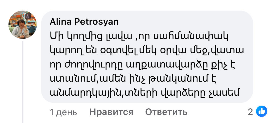 Մեր զրուցակիցն ընդգծեց, որ որոշ խմբերի դեպքում կգործեն արտոնություններ. «Այս պահին մենք մշակում ենք արտոնությունների փաթեթը, որ մինչև սեպտեմբեր ընդունենք, կան տարբեր խոցելի խմբեր, որոնց անդրադառնալու ենք, դա հիմնականում լինելու է սոցիալապես անապահով խավը, այսինքն՝ պետական մարմիններից որոշակի տվյալներ ենք ստանալու, որտեղ փորձելու ենք հասկանալ, որ անձինք են, որ իրապես ունեն այդ արտոնության կարիքը, հաշմանդամության կարգ ունեցողները, որոնք ունեն սոցիալական խնդիր, իրենց ենք անդրադառնալու, նաև պատերազմի արդյունքում հաշմանդամություն ձեռք բերած անձանց ենք փորձելու անդրադառնալ, ուսանողների մասով ենք որոշակի զեղչեր մտածում ներդնել: Մոտավորապես այս շրջանակի մեջ փորձելու ենք արտոնություններ սահմանել»: